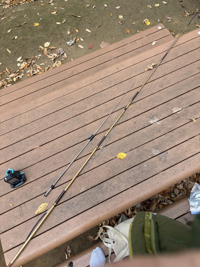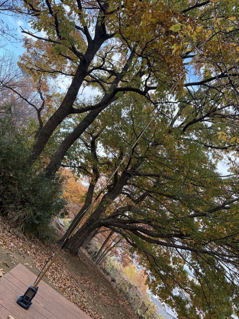 木が邪魔して良くみえませんが、ほぼ対角線右上までロッドがあります。なかなかバカバカしいほどの長さ。。。