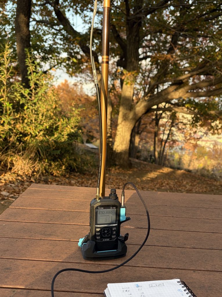 5局と交信してレポートいただいたのですが、最後の1局は電池切れでちゃんとレポート交換できずに終わってしまいました。申し訳ありません。。。